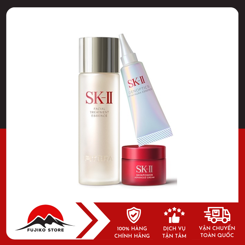 Set 3 món dưỡng da cao cấp SK-II Nhật Bản là sự kết hợp hoàn hảo của những sản phẩm chăm sóc da đình đám nhất: Nước thần Facial Treatment Essence, Tinh chất dưỡng (Serum) và Kem dưỡng ẩm. Đây là liệu trình chăm sóc toàn diện giúp da sáng mịn, săn chắc, trẻ trung và rạng rỡ hơn từng ngày.