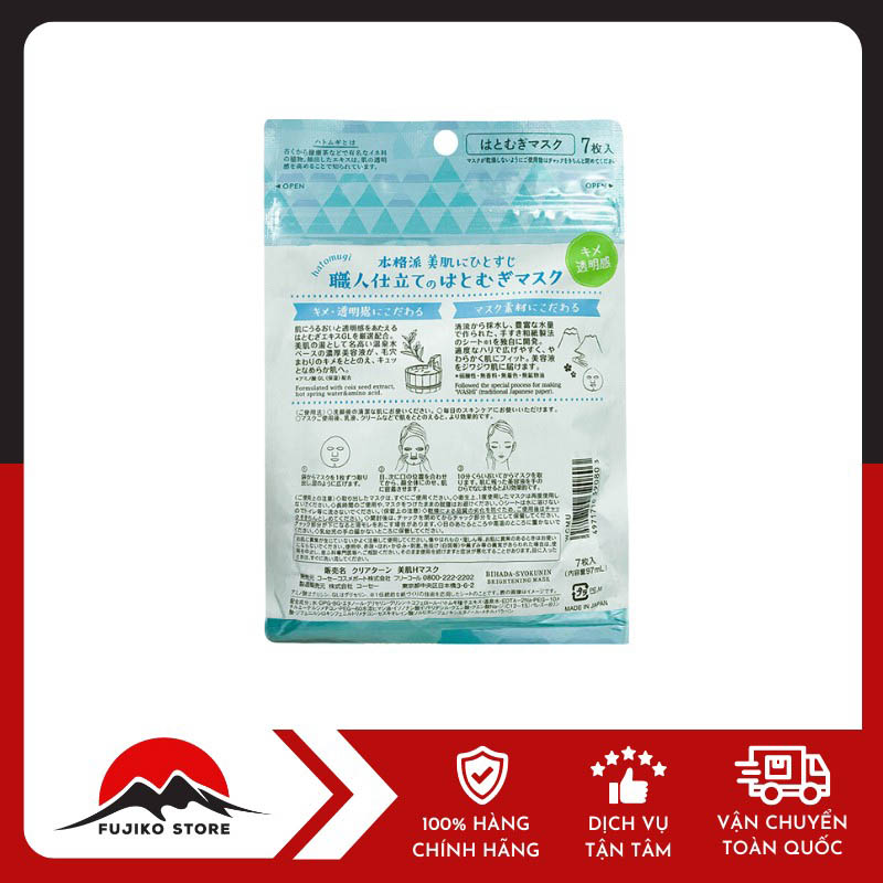 – Mặt nạ giấy truyền thống Nhật Bản được làm thủ công với nguồn nước sạch tinh khiết, êm dịu với da.