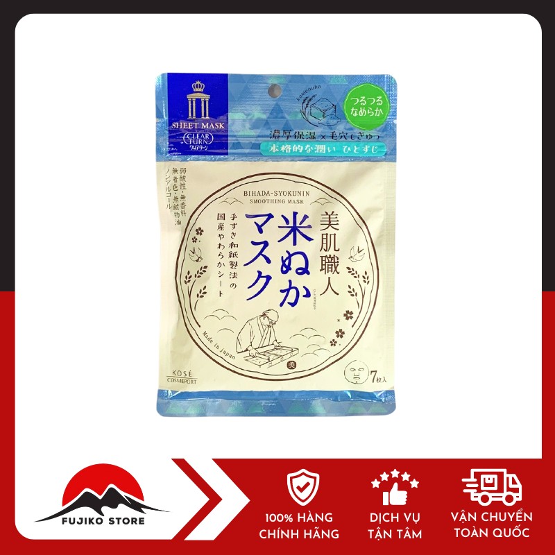 Mặt nạ dưỡng mềm mịn da chiết xuất cám gạo Clear Turn KOSE giúp cấp ẩm và nuôi dưỡng làn da mềm mại, mịn màng. Mặt nạ được sản xuất theo phương phát thủ công bởi nghệ nhân lành nghề Nhật Bản với nguồn nước suối tinh khiết và nhiều thành phần làm đẹp từ tự nhiên được chọn lựa kỹ càng.