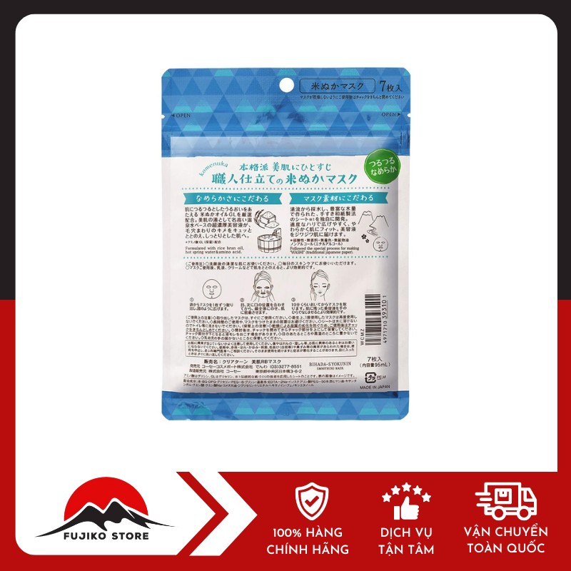 - Mặt nạ giấy được sản xuất hoàn toàn thủ công bởi các nghệ nhân lành nghề của Nhật Bản, sử dụng nguồn nước dồi dào lấy từ Mimasaka đảm bảo mặt nạ an toàn, mềm mại và vừa vặn với mọi khuôn mặt.