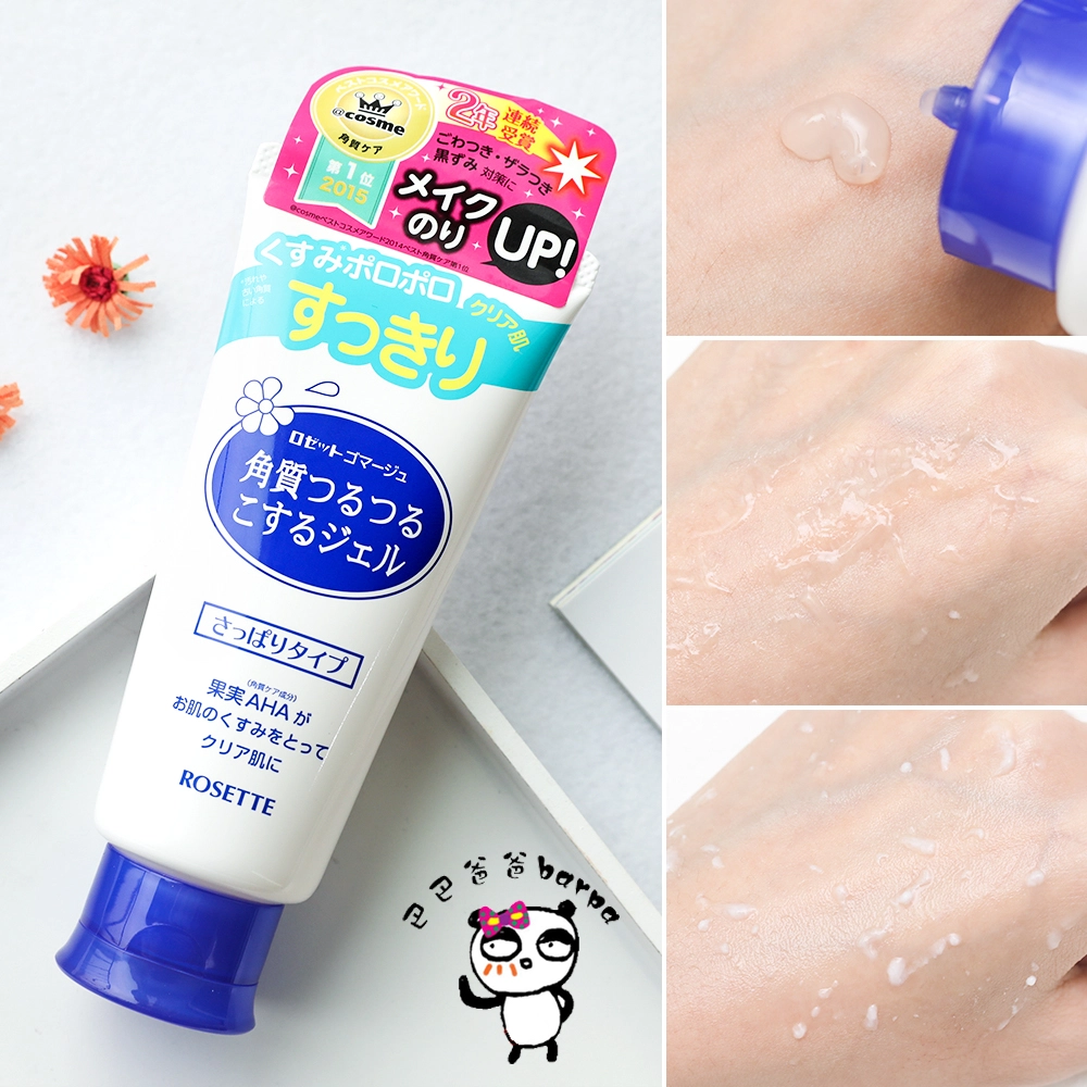 Gel tẩy da chết 120g ROSETTE là dòng tẩy tế bào chết dạng gel đình đám từ Nhật Bản, nổi tiếng với khả năng loại bỏ da chết nhẹ nhàng bằng AHA, giúp da mịn mượt, sạch thoáng mà không gây rát hay kích ứng.