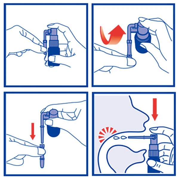- Thiết kế vòi phun dài dễ dàng đưa thuốc vào sâu trong vùng họng, khử trùng và tiêu diệt vi khuẩn gây viêm họng, sưng họng