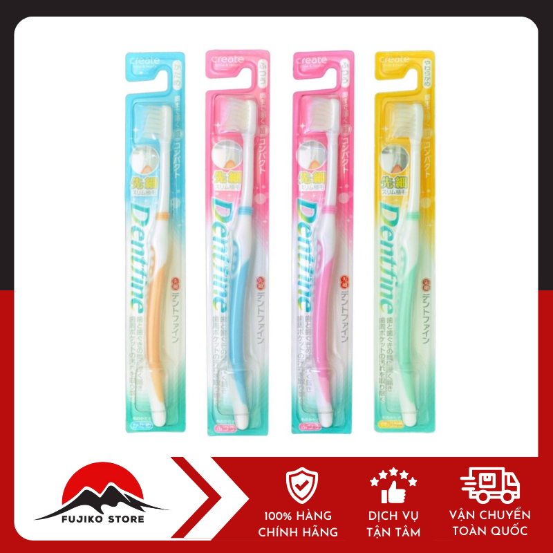- Bàn chải đánh răng Dentfine của Create có sợi lông bàn chải siêu mảnh giúp đi sâu vào từng kẽ răng và nướu, loại bỏ mảng bám và thức ăn thừa nhanh chóng mà không làm tổn thương vùng nướu lợi.