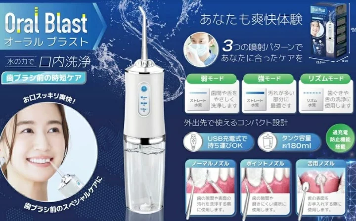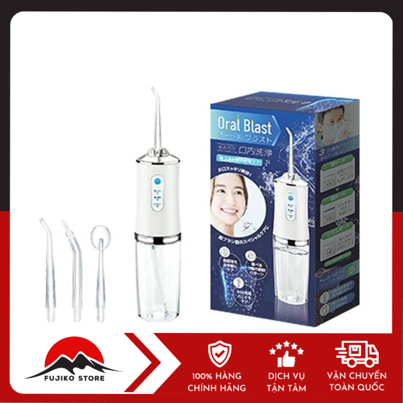 Máy tăm nước Oral blast sạc USB màu trắng ORAL BLAST là thiết bị vệ sinh răng miệng hiện đại đến từ Nhật Bản, giúp làm sạch sâu khoang miệng bằng áp lực nước, hỗ trợ loại bỏ mảng bám, vụn thức ăn giữa các kẽ răng và nướu – đặc biệt phù hợp cho người đang niềng răng, trồng răng hoặc gặp vấn đề nha chu. Thiết kế nhỏ gọn, dễ sử dụng và có thể mang theo mọi lúc mọi nơi.