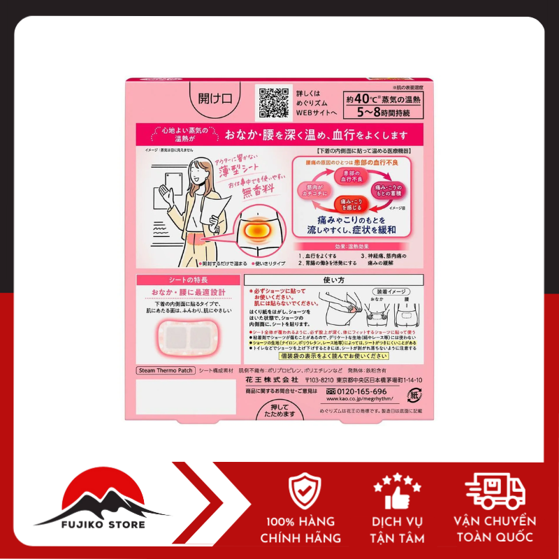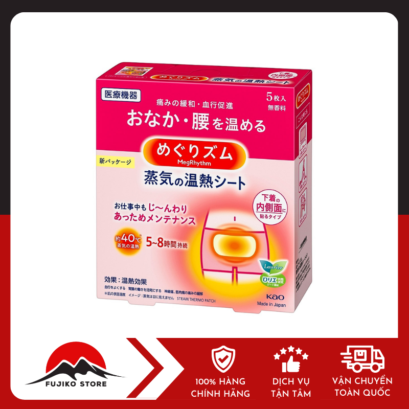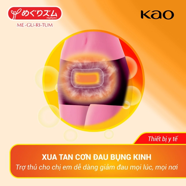 Miếng dán làm ấm giảm đau bụng kinh 5 miếng KAO là thiết bị y tế, giúp làm nóng và giảm đau vùng bụng/lưng dưới trong ngày “đèn đỏ” hoặc khi có vấn đề về tiêu hóa. Miếng dán được thiết kế dễ dàng sử dụng.