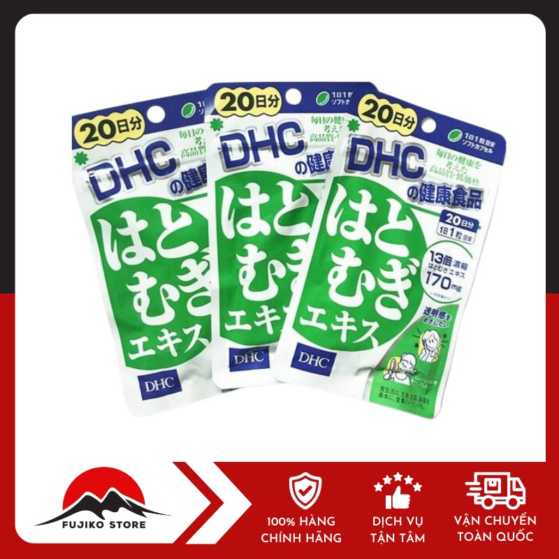 Viên uống hỗ trợ trắng da Hatomugi DHC 20 viên là sản phẩm dưỡng trắng da cao cấp được nhiều chị em quan tâm. Sản phẩm sở hữu bảng thành phần tự nhiên rất an toàn và lành tính, đặc biệt là sự có mặt của hạt ý dĩ Hatomugi với khả năng làm trắng, dưỡng da mịn màng, tươi sáng.