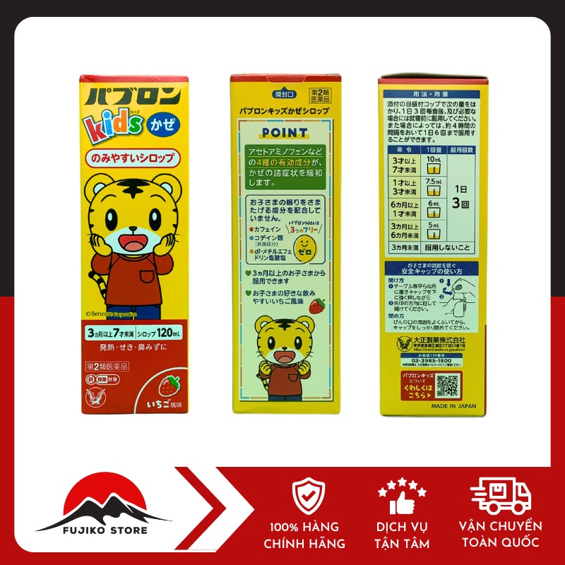 Siro cảm cúm Parubon cho trẻ em vị dâu TAISHO là tên gọi tắt phổ biến của sản phẩm siro Paburon Kids S. Sản phẩm có tác dụng trị ho, cảm cúm dành cho trẻ em, được sản xuất, kiểm định theo tiêu chuẩn nội địa Nhật. Tên gọi siro ho chó mèo được mẹ Việt thường sử dụng dựa theo hình dáng thú vị được in trên bao bì.