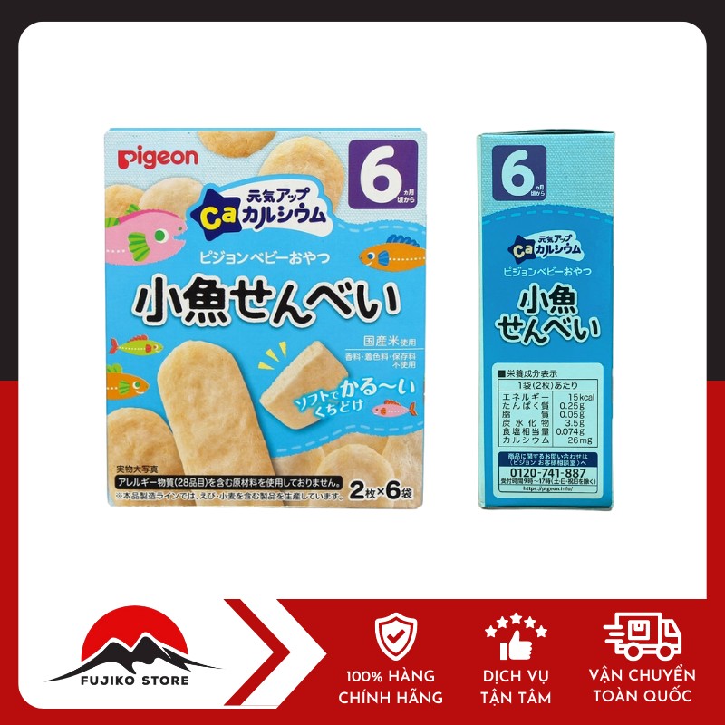 – Bánh ăn dặm bổ sung canxi cá mòi 6 tháng PIGEON của Nhật là thức ăn dặm cho bé từ 6 tháng tuổi trở lên. Sản phẩm hỗ trợ bổ sung các chất dinh dưỡng cần thiết để hỗ trợ cho sự phát triển cả trí não và thể chất của bé, đặc biệt là DHA, canxi, sắt, Iốt, kém, các vitamin A, D, C …