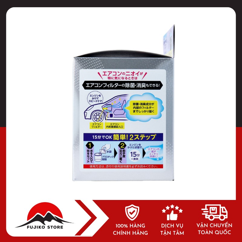 Cách 2: Khử trùng và khử mùi máy điều hòa ô tô: Điều chỉnh quạt gió của điều hòa đến mức tối đa và không tắt điều hòa trong quá trình sử dụng sản phẩm. Thực hiện các thao tác lắp hộp tương tự như trên, sau đó đóng cửa xe và để yên cho đến khi hóa chất thoát hết (khoảng 15 phút). Mở tất cả các cửa xe và để thông gió trong khoảng 5 phút.