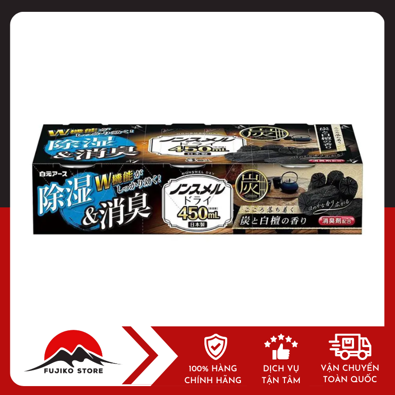 Set 3 hộp hút ẩm và khử mùi ngăn tủ 450ml Hakugen Earth loại bỏ mùi hôi, mùi ẩm mốc, khó chịu trong tủ quần áo, tủ giày & ngăn ngừa nấm mốc