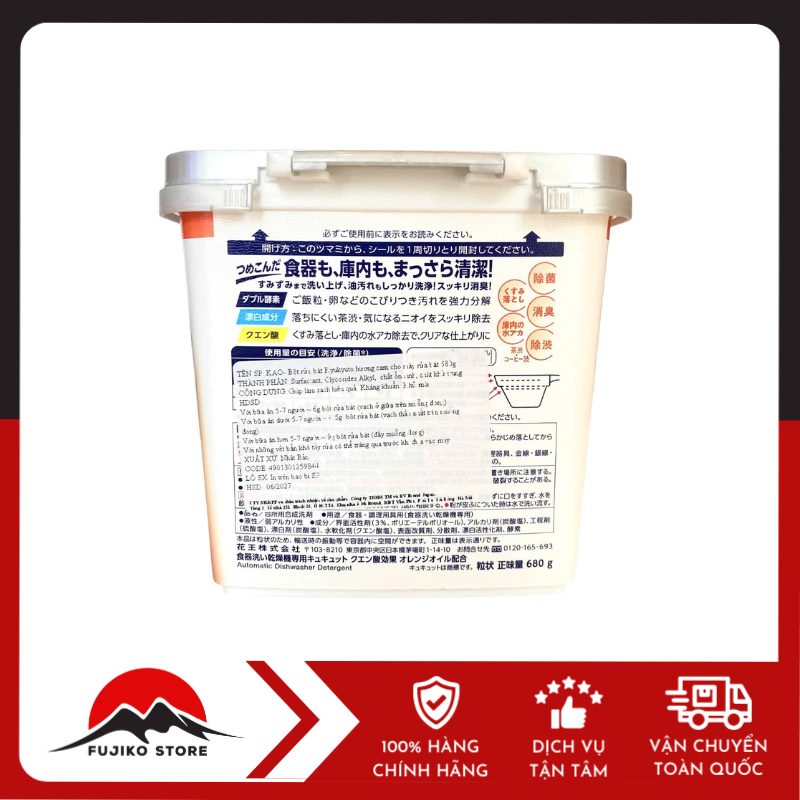 Thành phần của Bột rửa bát Kyukyuto hương cam cho máy 680g KAO: