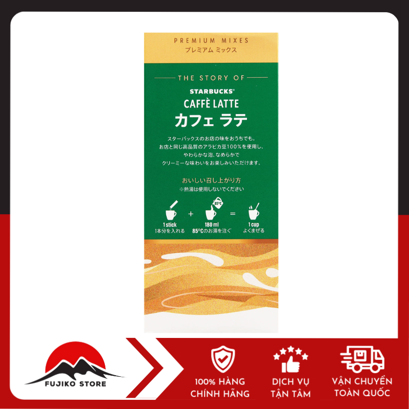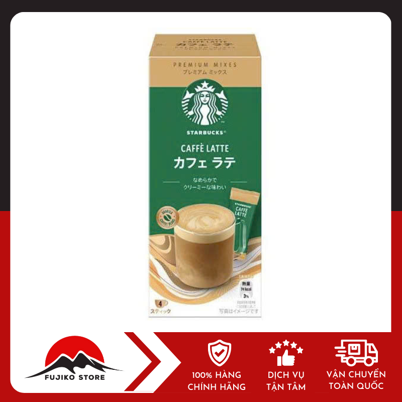 Cà phê sữa Latte dạng hòa tan 4 gói STARBUCKS là dòng cà phê hòa tan cao cấp thuộc dòng Premium Mix do Nestlé Nhật sản xuất độc quyền cho thị trường nội địa. Được làm từ 100% hạt cà phê Arabica chất lượng cao kết hợp với bột sữa mịn màng, sản phẩm mang đến vị cà phê sữa thanh, không đắng gắt, cùng lớp bọt nhẹ nhàng – cho bạn trải nghiệm như đang nhâm nhi latte tại quán Starbucks thực thụ.
